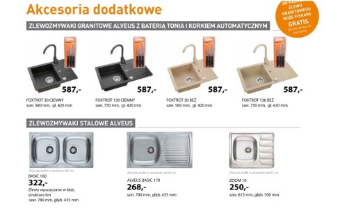 - Szafki dolne wyposażono w regulowane nóżki o wysokości 10 lub 15 cm cm