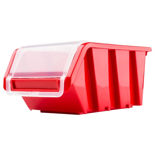 Ergonomiczny kształt pojemników umożliwia ich piętrowanie. Zastosowany stelaż umożliwia również układanie ich w stos, dzięki czemu możemy znacznie zaoszczędzić przestrzeń przy stanowisku, usprawnić dostęp do drobnych elementów. Przemyślana konstrukcja pozwala na wkładanie pojemników jeden w drugi. Wersja z pokrywą zapewnia pyłoszczelność oraz bezpieczeństwo podczas transportu. Pojemniki można wieszać na tablicach narzędziowych dostępnych w naszej ofercie.
