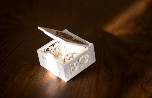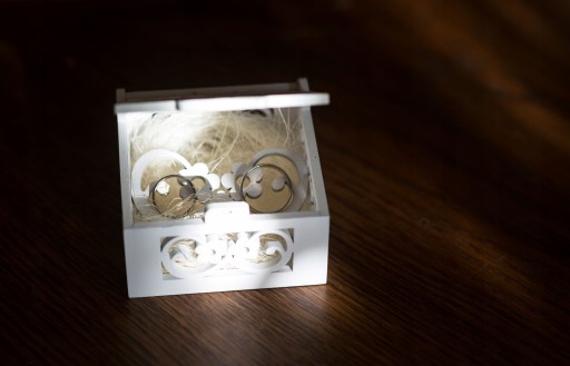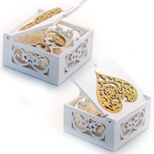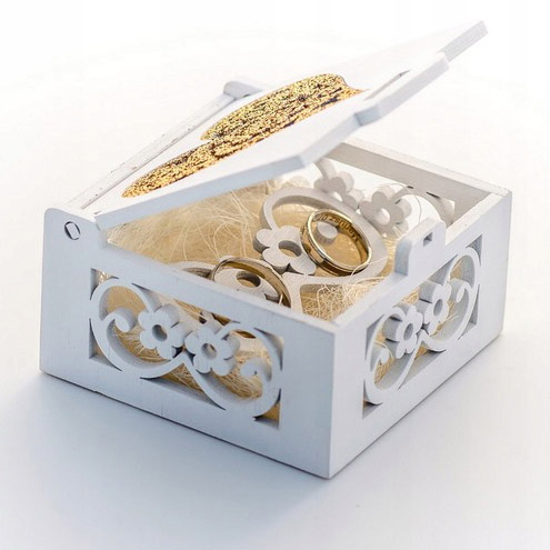- Pudełko wspaniale posłuży podczas ceremonii ślubnej i pozwoli w efektowny sposób podać obrączki