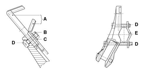 - E - Płytka mocująca do dolnej rurki tylnego trójkąta ramy.