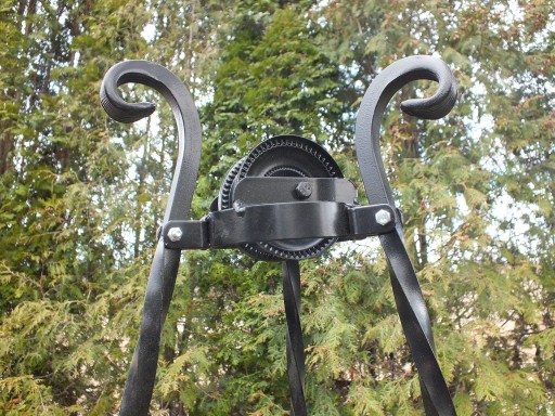 Konstrukcja na trójnogu wykonanego z giętego pręta stalowego grubości 1 cm umożliwia użycie grilla nad paleniskiem, dołączonym do zestawu lub nad ogniskiem.