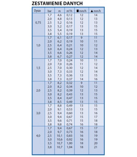 - Samonastawna konstrukcja nie wymaga wymiany podczas zmiany dyszy.