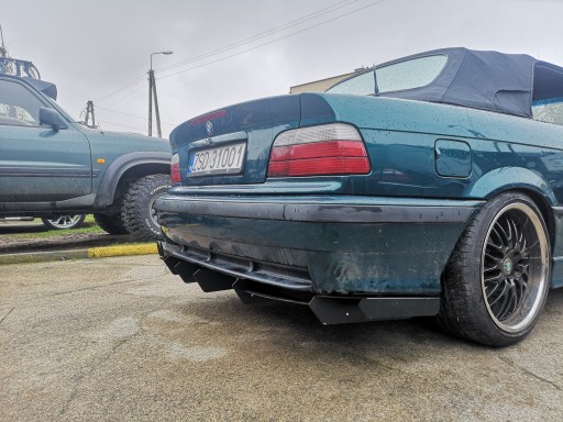 Oferujemy dyfuzor, dokładkę tylnego zderzaka do BMW E36 ze zderzakiem M-pakiet. Zaprojektowany został z myślą nadania samochodowi raceingowego charakteru oraz jego optycznego obniżenia. 2 środkowe skrzydła można wysunąć bardziej do tyłu, boki mają regulowane pochylenie aby dopasować je do tłumika.
