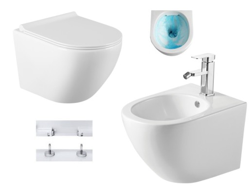 Zestaw Mexen Lena - stelaż wc + stelaż do bidetu + miska wc + deska wolnoopadająca + przycisk spłukujący + 2 x mata