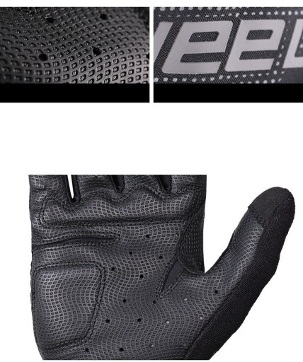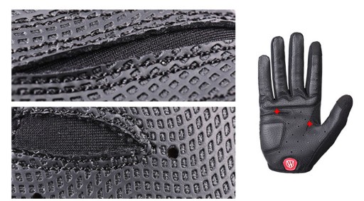 Rękawice dopasowują się do dłoni rowerzysty, dzięki miękkiemu i trwałemu materiałowi. Skóra PU w wewnętrznej części dłoni pozwala na swobodne korzystanie z urządzeń dotykowych. Trwały, miękki materiał zwiększa komfort i przyczepność. Amortyzacja SBR pozwala na jazdę na długich dystansach bez bólu.