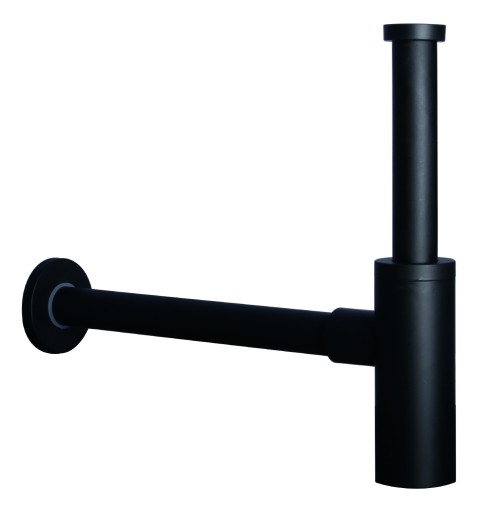 Syfon dekoracyjny czarny matowy do umywalki. Standardowe przyłączenie 5/4" pasuje do spustu typu klik lub tradycyjnego na ciągadło, średnica rury odpływowej 32mm. Syfony wykonany bardzo starannie, można go czyścić od spodu odkręcając tworzywowy korek. Zaletą jest długa rurka spustowa i duża możliwość regulacji w pionie(max 15 cm). Na innej mojej aukcji dostępny do kompletu uniwersalny klik-klak.