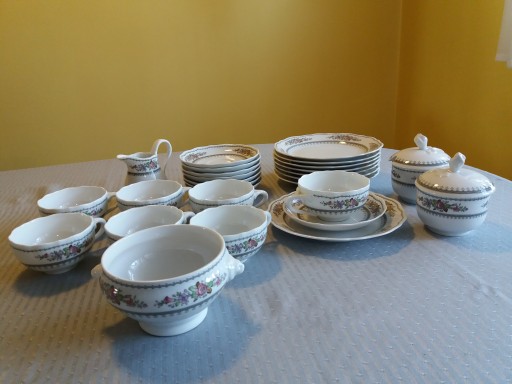 SERWIS KAWOWY HUTSCHENREUTHER MISECZKA ŚREDNICA 11,4CM,WYSOKOŚĆ 7,5CM,FILIŻANKA ŚREDNICA 9CM,WYSOKOŚĆ 5CM-7SZT,PODSTAWEK ŚREDNICA 13,9CM-8SZT,TALERZYK ŚREDNICA 19,2CM-8SZT,MLECZNIK ŚREDNICA 6,5CM-5CM,WYSOKOŚĆ 8,9CM,CUKIERNICA ŚREDNICA 8,7CM,WYSOKOŚĆ 11CM-2SZT.