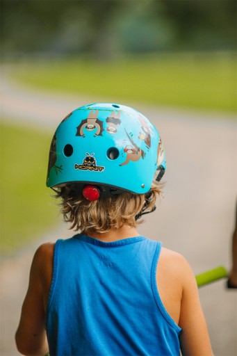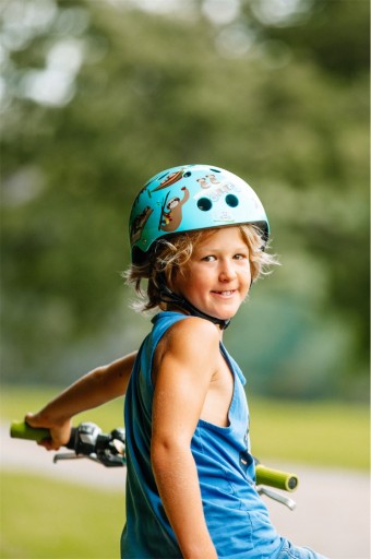 Bezpieczeństwo. Kask ma certyfikat CPSC (Consumer Product Safety Commission) i CE. Prawidłowo założony ochroni główkę dziecka podczas upadku.