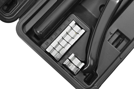 Zakres pracy: 4,0 - 70,0 mm2. Kamienie dostępne w zestawie: 4, 6, 10, 16, 25, 35, 50, 70. 8 MATRYC HARTOWANYCH.