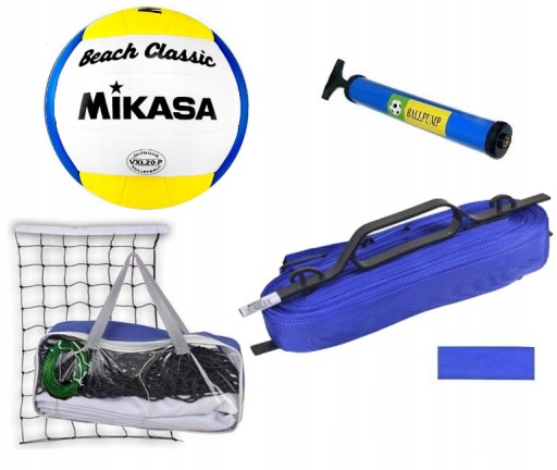Komplet do SIATKÓWKI PLAŻOWEJ ( lub tradycyjnej) SIATKA + LINIE + PIŁKA MIKASA + POMPKA