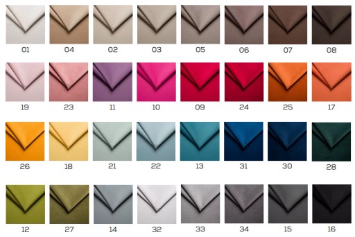 AMOR VELVET – to wyjątkowa tkanina, która z uwagi na swoje właściwości zaliczana jest do materiałów klasy velvet. Pokryta jest specjalną warstwą ochronną, tworząca hydrofobową powłokę zabezpieczającą przed szybkim przesiąkaniem płynów. Zapobiega to natychmiastowemu absorbowaniu wody przez tkaninę, sprawiając że ciecz skrapla się na powierzchni materiału – za dopłatą.