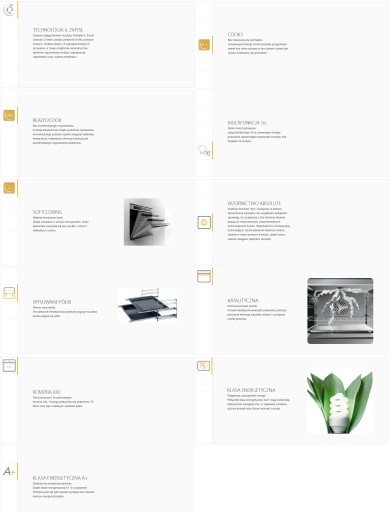 Cechy piekarnika do zabudowy Whirlpool: zaawansowana technologia elektryczna umożliwia oszczędne gotowanie potraw. Lampa halogenowa zwiększa wydajność energetyczną. Wyjątkowa technologia 6-ty Zmysł umożliwia wybór spośród różnorodnych zaprogramowanych wcześniej ustawień, dzięki którym piekarnik automatycznie dopasuje ustawienia gotowania, temperatury i czasu, zapewniając doskonałe rezultaty. Innowacyjna funkcja Cook3 umożliwia gotowanie trzech oddzielnych potraw jednocześnie bez ryzyka pomieszania zapachów. Delikatne zamykanie drzwiczek piekarnika ułatwiające korzystanie
