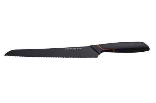 Długi, elegancki, 29 cm nóż marki FISKARS, z ząbkowanym ostrzem, łatwo przecina skórkę każdego rodzaju pieczywa.