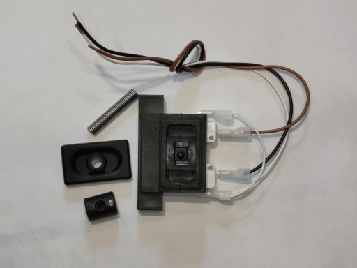 W czerwonym okręgu zaznaczono opisywaną część (nr 10, 11, 12) - wyłącznik krańcowy z przewodami.