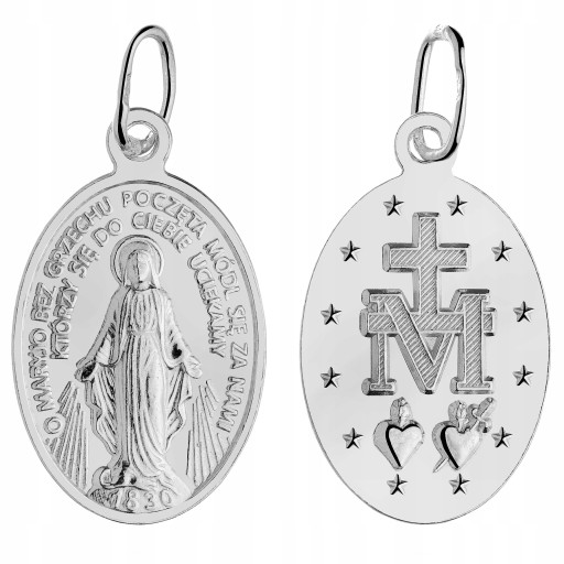 Medalik zawiera napis, który jest otoczony nad Matką Boską : ''O MARYJO BEZ GRZECHU POCZĘTA MÓDL SIĘ ZA NAMI , KTÓRZY SIĘ DO UCIEKAMY''