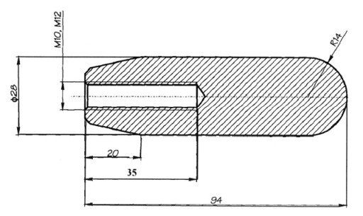 Posiada gwintowany otwór nieprzelotowy M10 lub M12.
