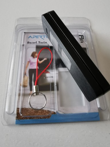 Nadajnik (pilot) 2-kanałowy Pearl Twin 868,8/868,95 MHz, z kodem dynamicznie zmiennym. Nadajnik nowej generacji SOMloq2, kompatybilny z dotychczasowym sterowaniem 868,6 MHz. Odporny na uszkodzenia mechaniczne, duża moc i selektywność sygnału. Zasięg 60 - 150 m w zależności od środowiska.