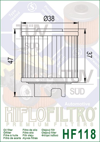 HIFLOFILTRO to pierwszy na świecie i jedyny motocyklowy filtr oleju zatwierdzony przez TÜV. Skonstruowane przy użyciu najlepszych dostępnych materiałów, wszystkie filtry oleju Hiflofiltro spełniają lub przekraczają poziomy wydajności oryginalnego wyposażenia. Dostępne dla modeli ulicznych, skuterów, motocrossu, enduro, ATV, UTV, morskich silników zaburtowych i skuterów śnieżnych.