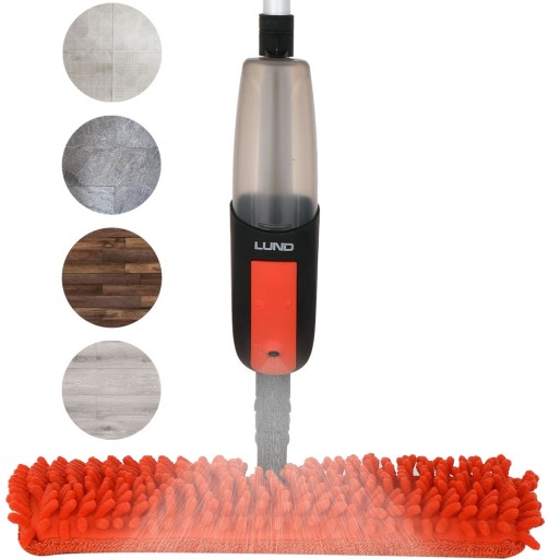 Mop ze spryskiwaczem i dwustronną nakładką z mikrofibry sprawdzi się przy sprzątaniu zarówno na sucho jak i na mokro. Dzięki pojemnemu zbiornikowi umieszczonemu na mopie mamy możliwość dozowania płynu w trakcie pracy - wystarczy nacisnąć przycisk umieszczony w rączce.