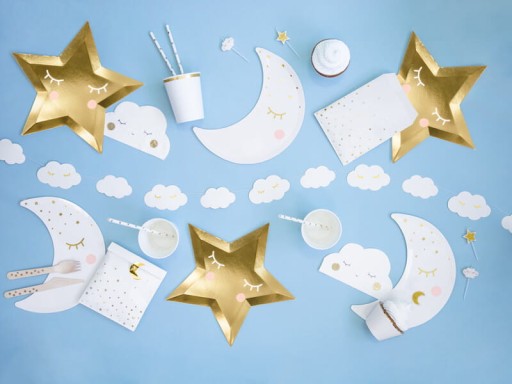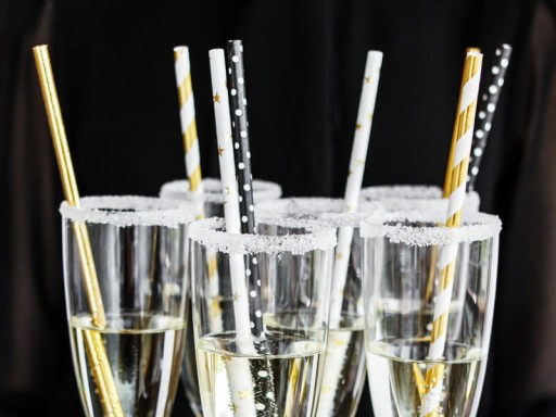 Słomki papierowe białe w złote gwiazdki, 19,5 cm
