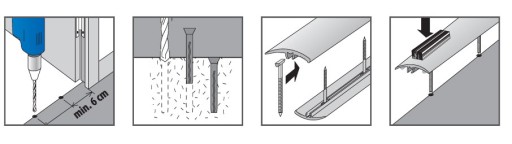 Listwę progową mocujemy za pomocą kołków montażowych dołączonych do paczki.