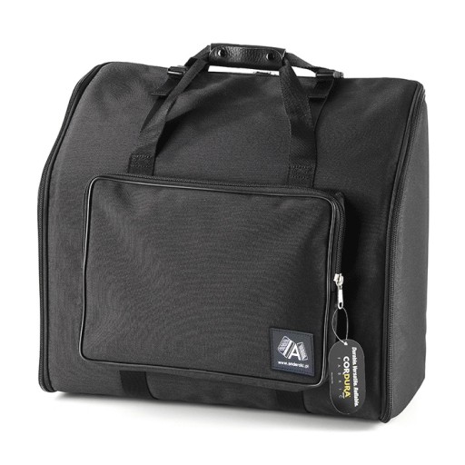 Profesjonalny włoski pokrowiec na akordeon. Wykonany z wysokiej jakości materiału - Cordury, który jest bardziej odporny na przetarcia niż w tradycyjnych pokrowcach. Wypełniony pianką polietylenową która zabezpiecza zarówno przed uszkodzeniami mechanicznymi jak i szkodliwym wpływem zmian temperatur. Pokrowiec posiada dużą kieszeń na nuty oraz solidne i mocne zamki, wygodny skórzany uchwyt do ręki i regulowane szelki do noszenia na plecach.