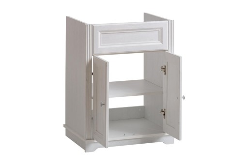 - Klasyczna szafka pod umywalkę 60cm z kolekcji Palace Andersen wyróżnia się pięknym dekorem w odcieniu malowanego na biało drewna. Stojąca szafka pod umywalkę posiada ozdobne metalowe uchwyty. W komplecie z umywalką w stylu retro.