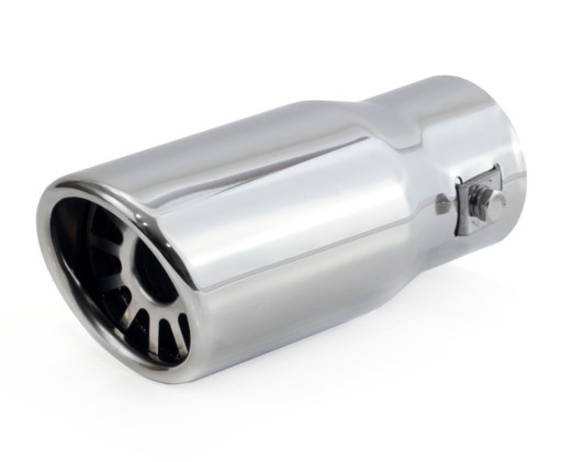 Końcówka tłumika marki AMIO, model MT011 o okrągłym kształcie i ściętym ku dołowi zakończeniu. Wykonana z wysokiej jakości stali nierdzewnej co zapewnia odporność na warunki atmosferyczne, spaliny i wysokie temperatury.