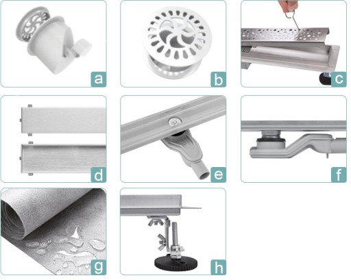 - H. EASYfix - szeroki zakres regulacji wysokości, który umożliwia dopasowanie odpływu do powierzchni posadzki