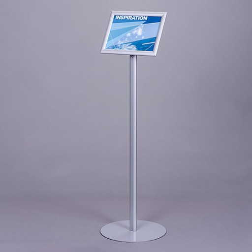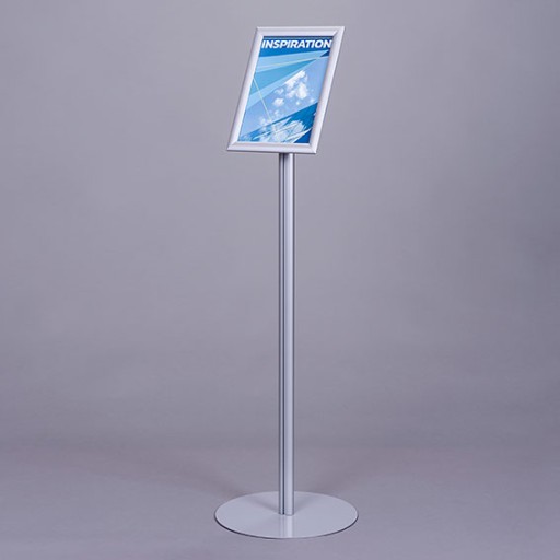 Stojak informacyjny TOP 1 wykonany jest z elementów z anodowanego aluminium i stabilnej okrągłej podstawy malowanej proszkowo. U szczytu znajduje się ruchoma głowica na której zamontowano ramkę OWZ z folią antyrefleksyjną zabezpieczającą plakat lub ulotkę.