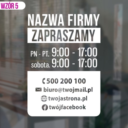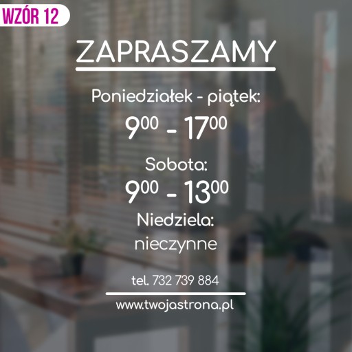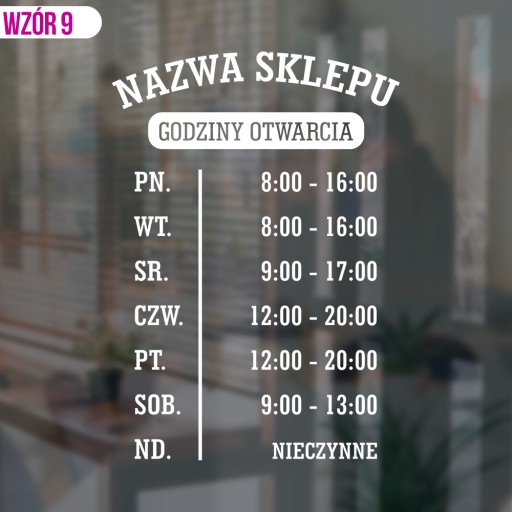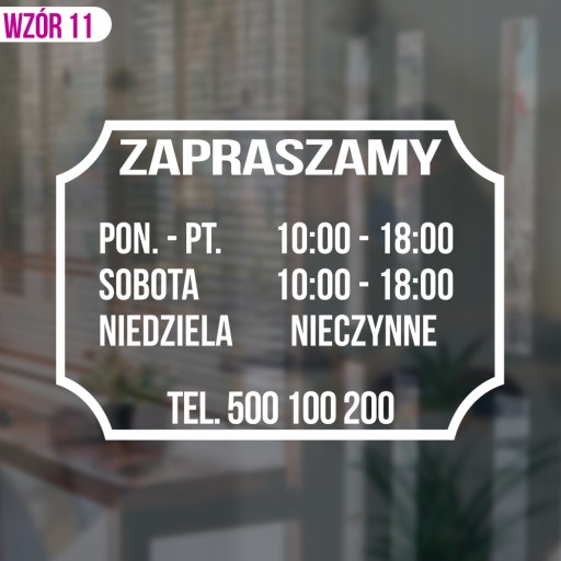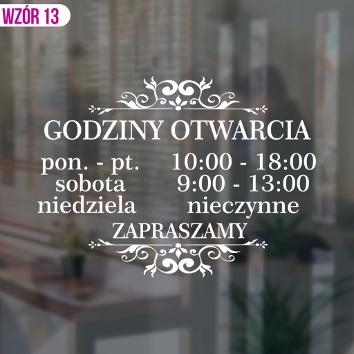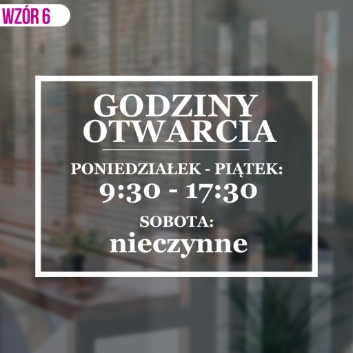 Godziny otwarcia - naklejka na drzwi, szyby i witryny sklepowe / firmowe.