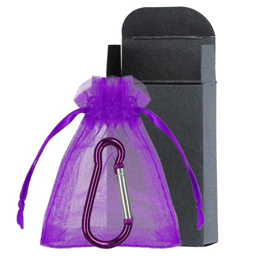 Domyślnie wysyłane jest zestaw z czarną torebką, czarnym karabińczykiem i czarnym pudełkiem.