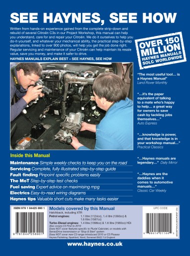 W książce opisano samochód Citroen C3 (2002-2009) - hatchback (w tym także model XTR) wyposażone w silniki: