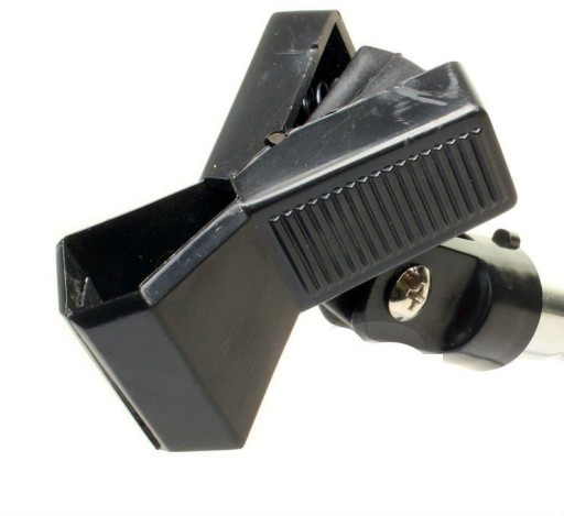 Klips sprężynowy umożliwia utrzymanie niemalże każdego mikrofonu. W zestawie znajduje się adapter z gwintem 3/8" na gwint statywu 5/8".