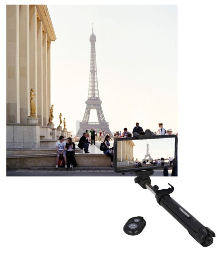 Uchwyt selfie doskonale nadaje się do robienia zdjęć/filmów z większej odległości.