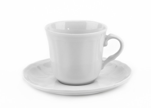 Porcelanowa filiżanka ze spodkiem świetna na białą kawę. Dzięki ponadczasowej klasycznej formie, będzie świetnym motywem glamour.