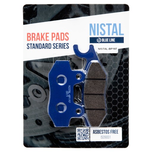 Klocki hamulcowe marki NISTAL to bezpieczny i trwały produkt posiadający doskonały stosunek jakości do ceny. Okładzina to organiczny materiał cierny wzbogacony dodatkami poprawiającymi hamowanie. Klocki z niebieskiej serii BLUE LINE dzięki zawartości 20% miedzi, zapewniają dobre odprowadzanie ciepła, nie szarpią i nie piszczą podczas hamowania. Zapewniają łagodne zużywanie się tarczy. Sprawdzą się również w cięższych motocyklach do rekreacyjnej jazdy. Wytwarzane zgodnie z certyfikatami: ISO 9001:2008, ISO 14001:2004, OHSAS 18001:2007.