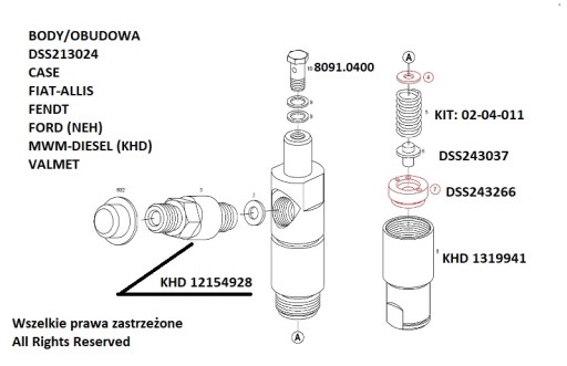 DOSTĘPNE: ZESTAW NAPRAWCZY WTRYSKIWACZA CASE/VALMET/FIAT-ALLIS/MWM: