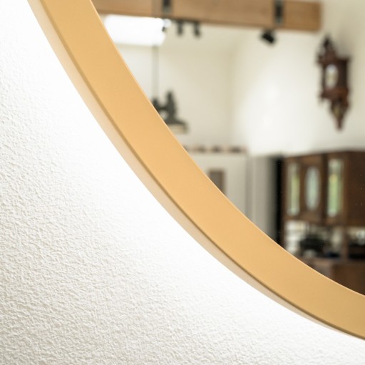 - Kształt lustra, zwłaszcza niski profil ramy oraz system mocowań, zapewniają doskonałe przyleganie do ściany oraz niezwykle delikatny i elegancki wygląd.