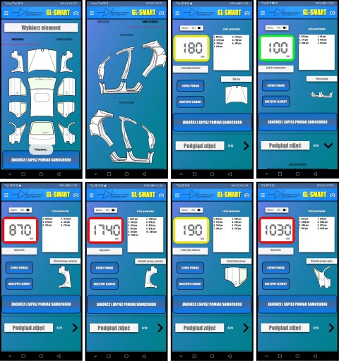 W aplikacji GL-SMART zastosowano rozwiązanie polegające na zmianie kolorów ramki z pomiarem: