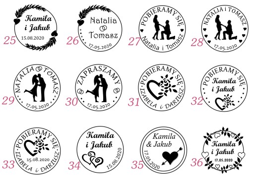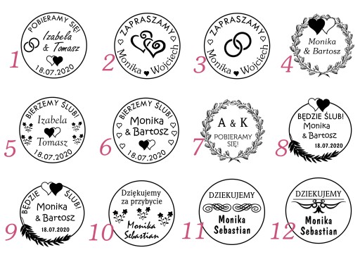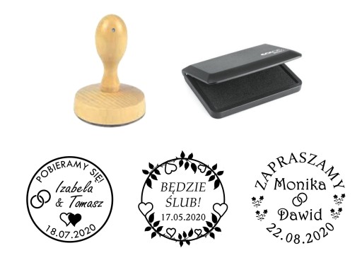 pieczątka ślubna do stemplowania zaproszeń, kopert, podziękowań