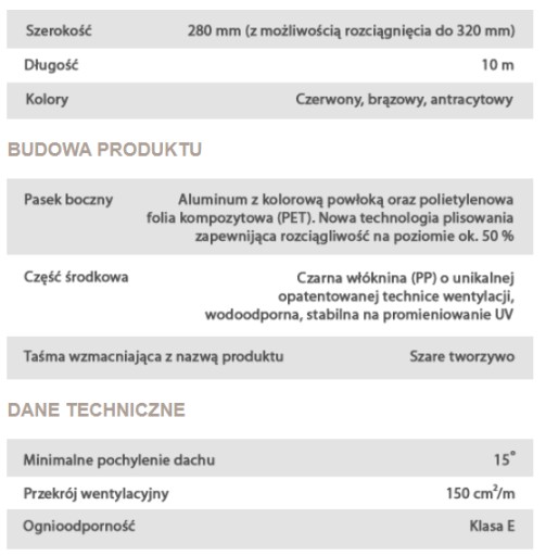 Figaroll ® Plus jest taśmą uszczelniająco – wentylacyjną o innowacyjnym, dwukanałowym systemie wentylacji, ułatwiającą doskonałą wentylację przy jednoczesnej ochronie przed deszczem i śniegiem. Mocne, a jednocześnie łatwe do plastycznego formowania aluminiowe krawędzie boczne taśmy zapewniają rozciągliwość na poziomie około 50%, co umożliwia optymalne pokrycie nawet wysokoprofilowanych dachówek.