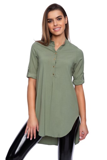 АССИММЕТРИЧНАЯ ДЛИННАЯ РУБАШКА, цвет хаки, размер S - 38