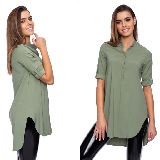 АССИММЕТРИЧНАЯ ДЛИННАЯ РУБАШКА, цвет хаки, размер S - 42
