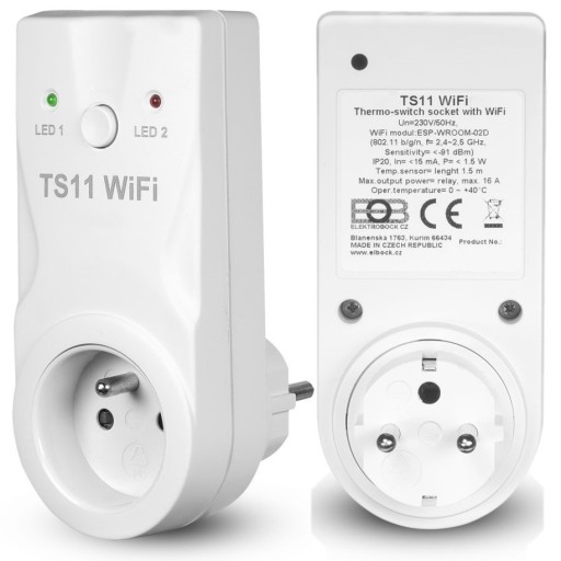 Programator gniazdkowy Elektrobock TS11 WiFi przeznaczony jest do zdalnego sterowania podłączonymi przez niego urządzeniami z dowolnego miejsca na świecie przez Internet na urządzeniach z systemem Android i iOS. Gniazdo Elektrobock TS11 Wi-Fi wyposażone jest w programator tygodniowy.