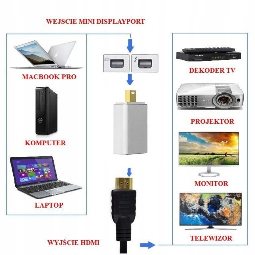 - Adapter Mini DisplayPort na HDMI jest przeznaczony do podłączania laptopów lub komputerów z mini DisplayPort do monitorów, wyświetlaczy, telewizorów HD lub projektorów z portem HDMI, który jest idealny do gier, kina domowego i prezentacji.