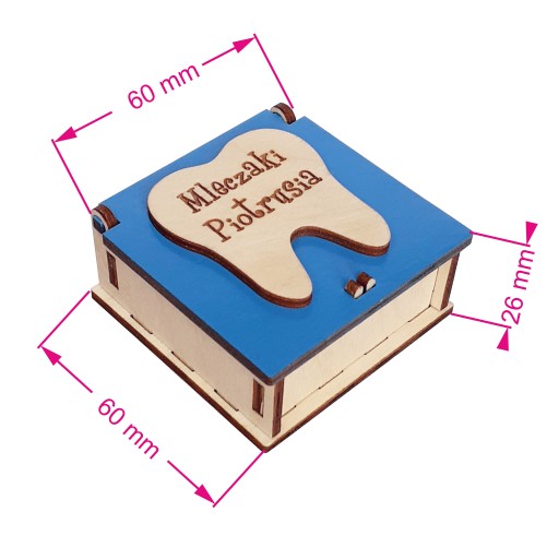 Do sprzedania pudełko na zęby mleczne ze sklejki. Wymiary jak na zdjęciu. Na wieczku standardowo jest umieszczamy grawer z napisem: "Mleczaki + imię dziecka"