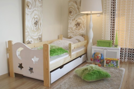 Łóżeczko SEWERYN wykonane jest w całości z litego drewna sosnowego, wykonanie jest bardzo staranne i dokładne. Łóżko "SEWERYN" łóżko malowane jest na kolor biały a następnie lakierowane. Łóżeczko SEWERYN wyróżnia się od wszystkich modeli łóżek wspaniałym i niepowtarzalnym wzorem w postaci gwiazdek i księżyca, które w oryginalny sposób utworzone są na czołach łóżka, daje to niesamowity efekt - Polecamy :-)