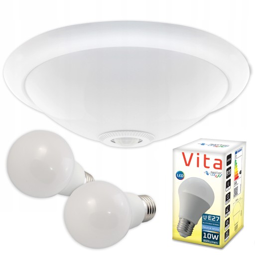 Plafon 2xE27 PIR + gratis 2x Żarówka LED E27 Vita A60 10W biały neutralny / zimny (4982 + 2x 2914, 2920, 2968)