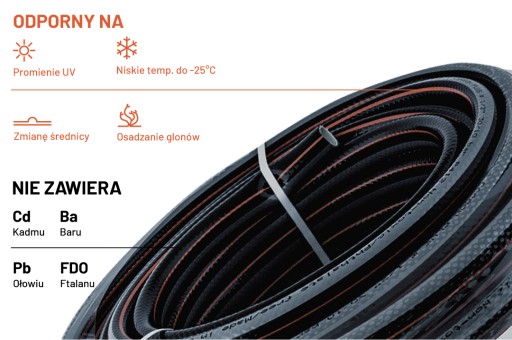 - Materiał: elastyczne PCW wzmocnione oplotem tekstylnym